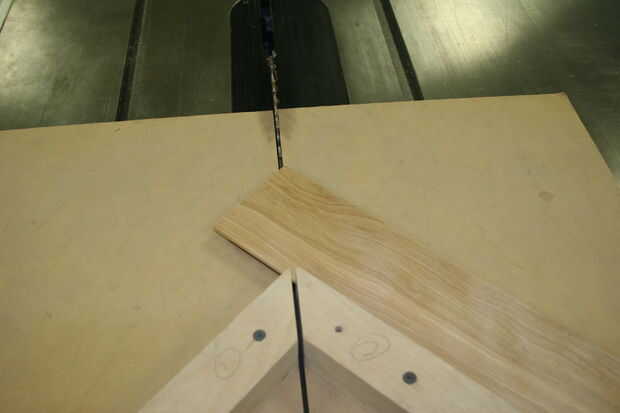 Coloque las piezas sobre una tabla, marcar los ingletes de esta manera que no tienes que pensar de qué manera vas a cortar el inglete. Una vez que lo hace un poco tiempo, usted no necesitará hacer esto.