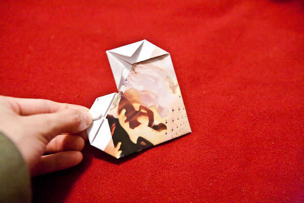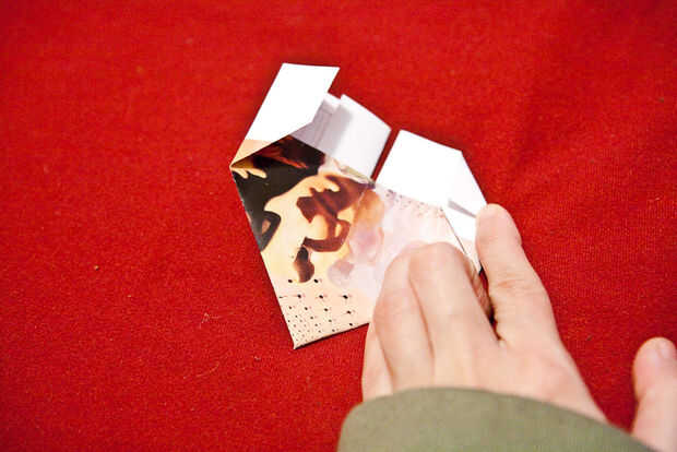 -Doblar los dos puntos hasta cumplir con el borde de papel horizontal.