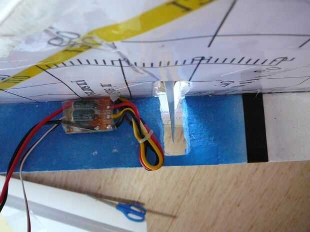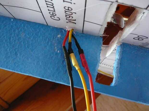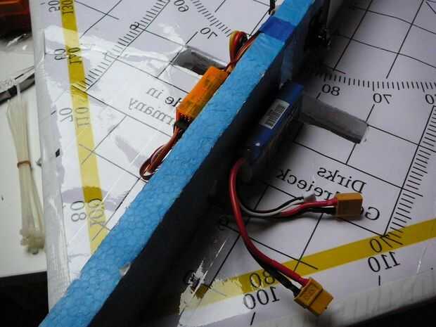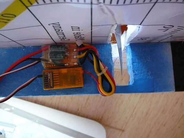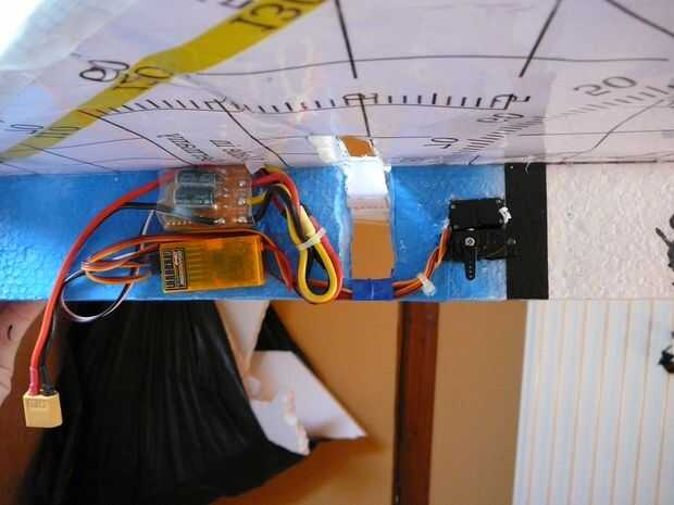 Usé un esc 35A. Mente cuando conecte los conectores de bala, al cambiar la polaridad (es un pushprop). Tratar de trabajar tan limpio como sea posible cuando pones la electrónica en su lugar. Para conectar los servos con las superficies de control, sólo utiliza algunas clevisses y había pegado controlhorns en lugar.