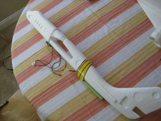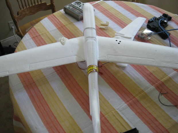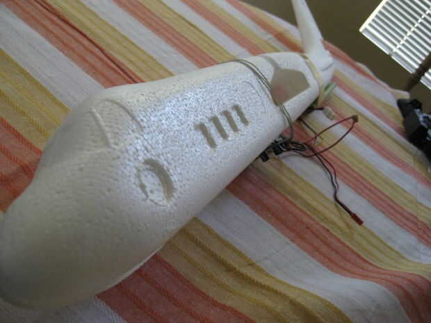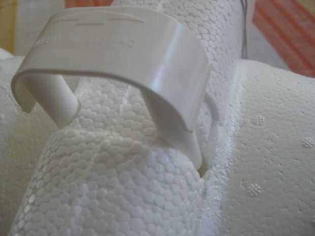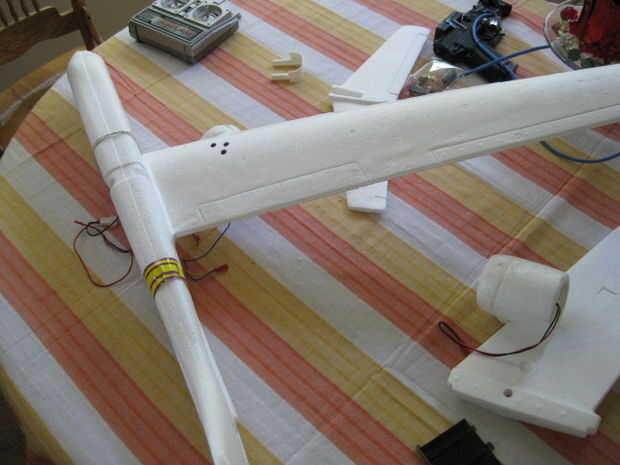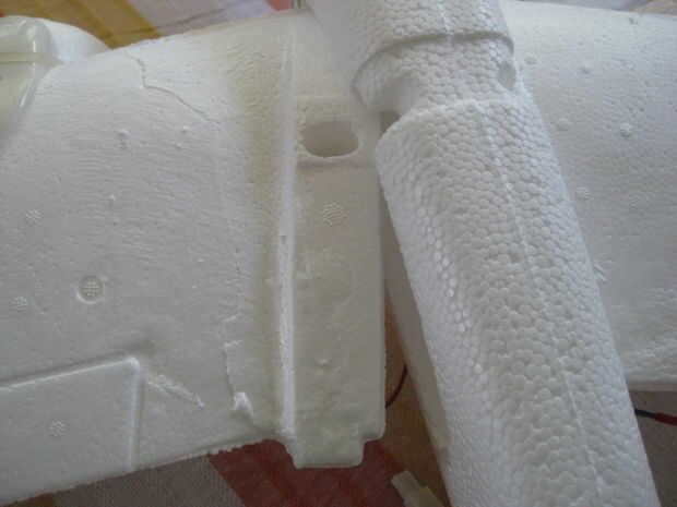 -Tomar el soporte del estilo de "U" y deslícelo dentro de los orificios hasta que quede a ras con el cuerpo, esto mantiene las alas en su lugar.