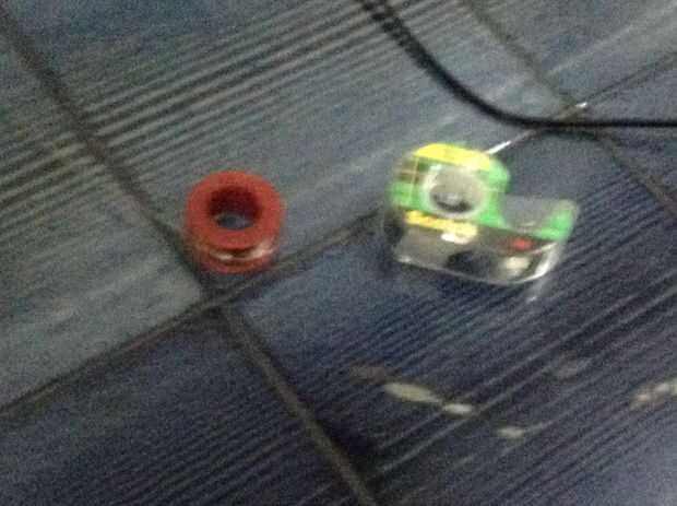 Se necesita: un coche del rc (nuevo o viejo), una batería de 3,3 v, 2 motores, una cartulina grande, un cuchillo del exacto, una pistola de pegamento, soldadura y algunas cintas
