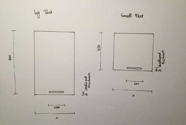 parte más pequeña = 30 cm (1/3 de 100) + 15 altura = 45 cm