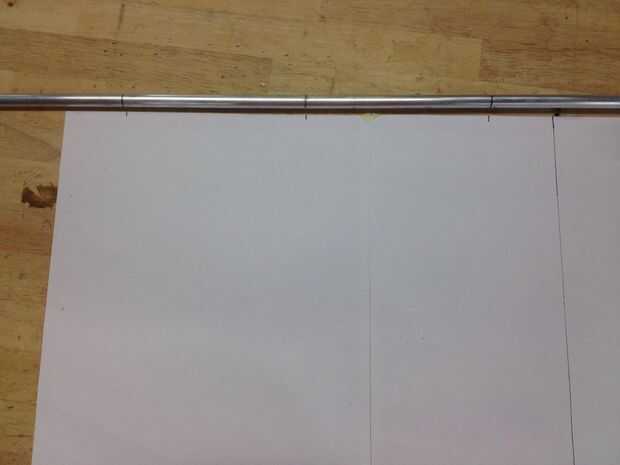 Primero hacer una prueba de la curva de 90 grados de un pedazo de tubo y ver por sí mismo donde la flexión se inicia, luego marcan el inicio de la flexión en la plantilla en cada esquina. Con la dobladora de tubo que utiliza, el inicio de la flexión era 65mm desde el borde. Esto no es el mismo para cada doblador de tubo aunque, por lo tanto adaptar las medidas si es necesario! Utilice este método para los bendings.