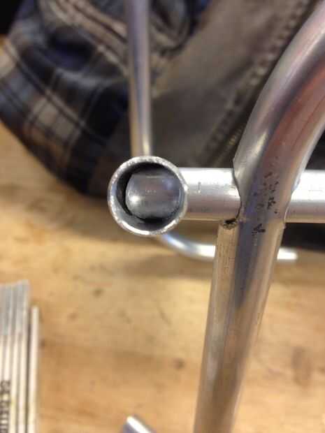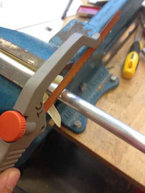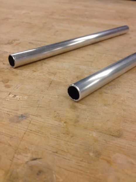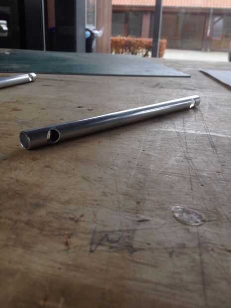 El eje están hechos de aluminio tubo de diámetro 10. Los cantos con una amoladora y cortar la longitud correcta. Esto asegura el eje para fijarse en el cuadro barras/bigger.