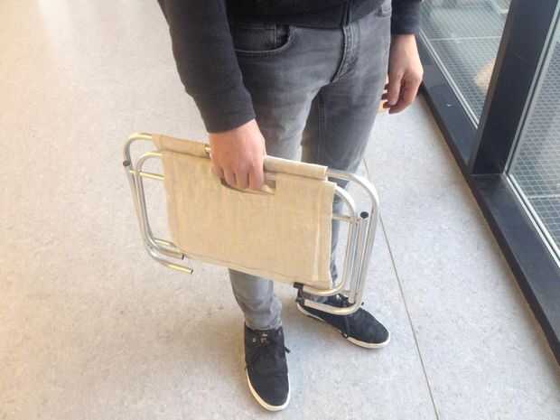 Para transportar el estante de periódico, sólo tire de los tubos de conexión del marco, colóquela en la bolsa e incorpore todo juntos. Para abrir el estante de periódico, simplemente presione nuevamente los tubos de conexión.