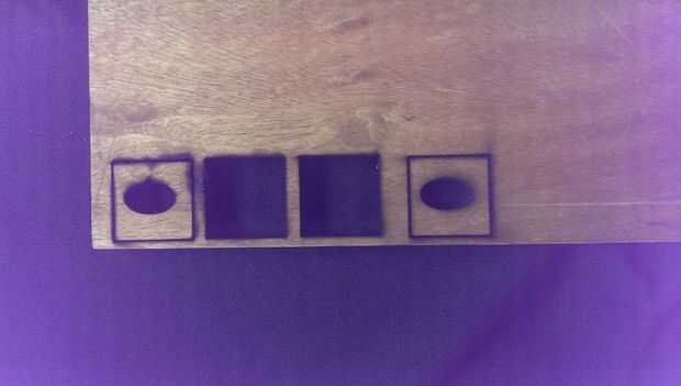 Primero pruebe la configuración de láser sobre una pieza sobrante de madera contrachapada.