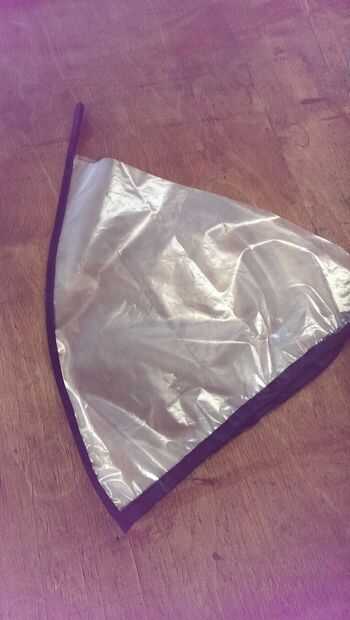 Ahora sigue los mismos pasos para el Climafilm. Sólo esta vez coser un bonito pedazo de la cinta banda alrededor de la costura. para cubrir la costura.