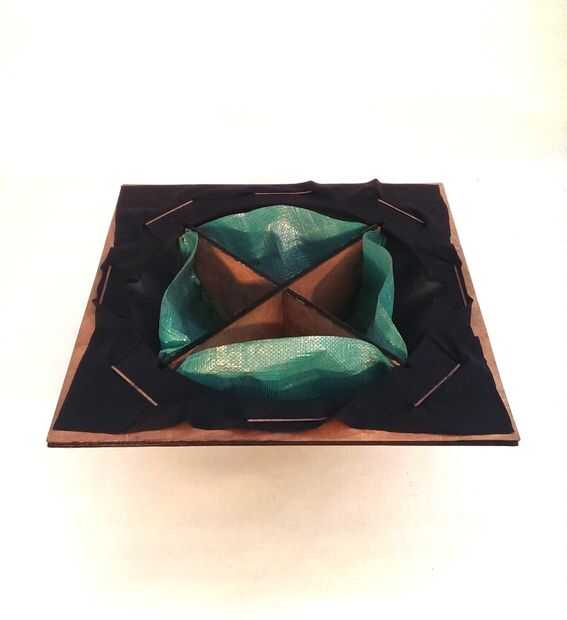Los bordes de la parte inferior la mitad se anidan en las cortes de la placa base.