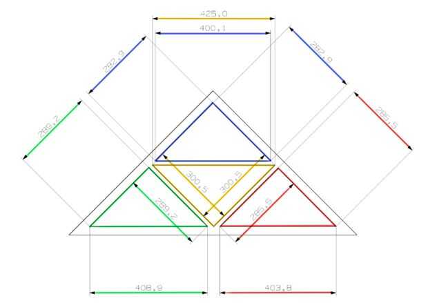 3. Cada triángulo es diferente. Etiqueta cada triángulo por color con alguna cinta de papel para más adelante.