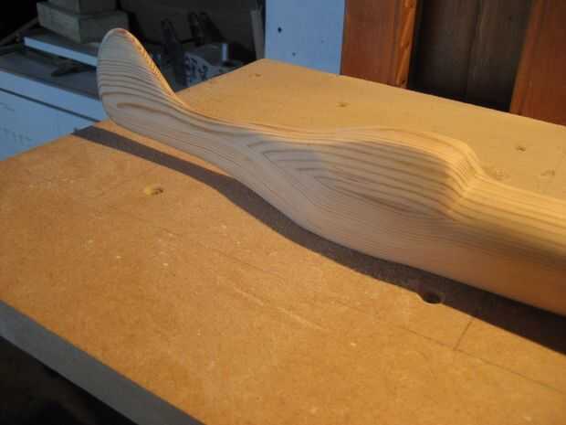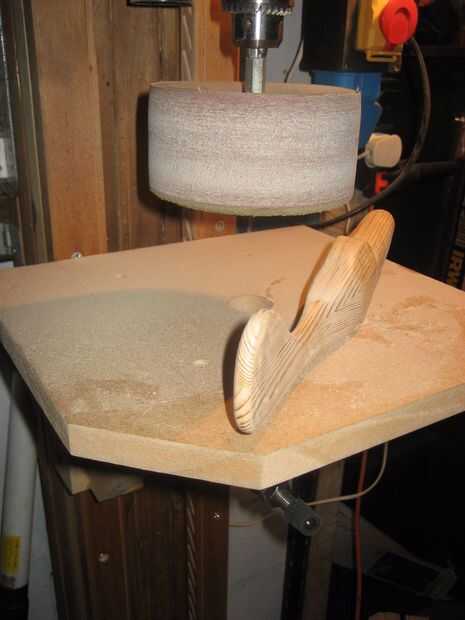 Luego hizo un corte áspero hacia fuera en mi sierra de calar y asumió a la prensa de taladro y utilizar lijadoras de tambor de diverso tamaño para aproximadamente la forma del cuerpo. luego hizo una segunda mitad para pegar a la primera listo para tallar hacia fuera con una amoladora con un disco de la aleta.
