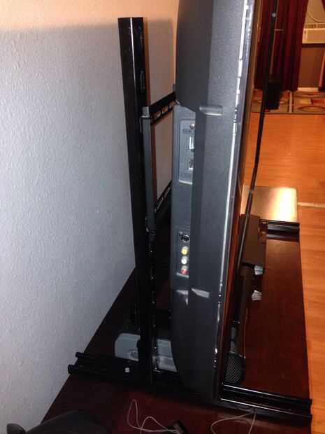 fui 4" la parte posterior de mis 16" pies y 24" piezas verticalmente por que con el puntal de los soportes atornillados con la tornillería de 3/8" así que su rígido. Puso 24" apart en el centro y montado en la parte de montaje de pared de la tv para el puntal con el hardware de 1/4" y que era vertical y cuadrado.