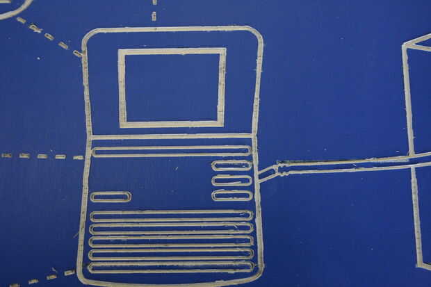 Ahora tenemos dos problemas con la parte delantera: desbordamiento de pintura en aerosol blanco y láser también quema.