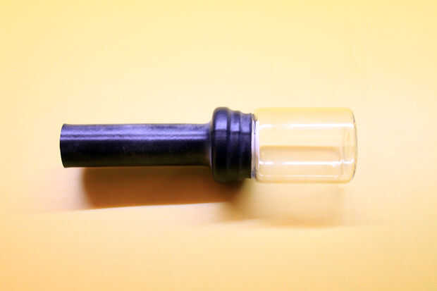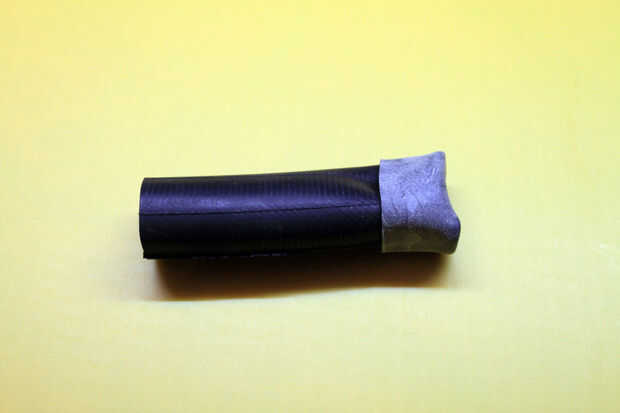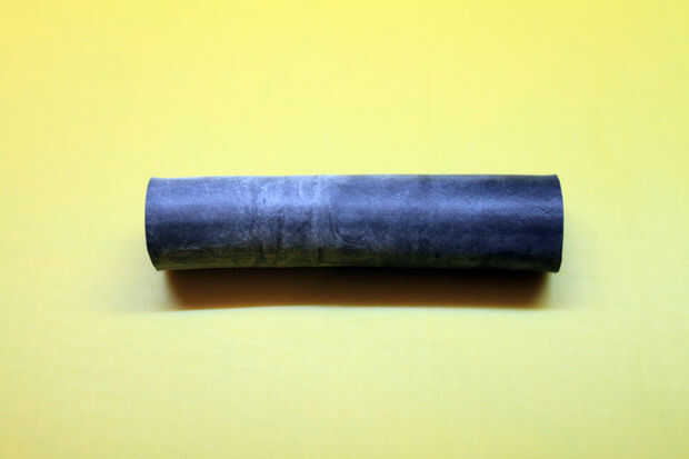 Luego el tubo al revés, la parte interior está libre de costuras y se ve mejor, una vez que quitó el polvo de talco. Usando una solución de agua tibia y detergente lavavajillas funciona bien.