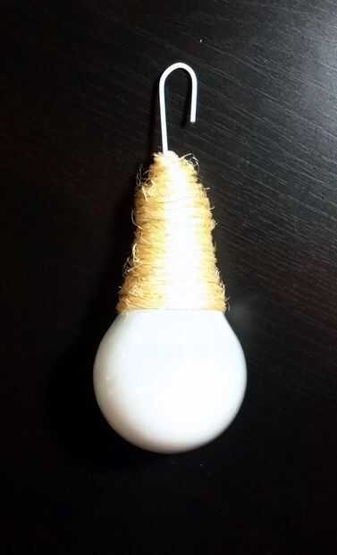 Atar cordeles en gancho y el abrigo por la bombilla de luz aparezca esférico orbe. Utilice pegamento para fijar extremos de guita.