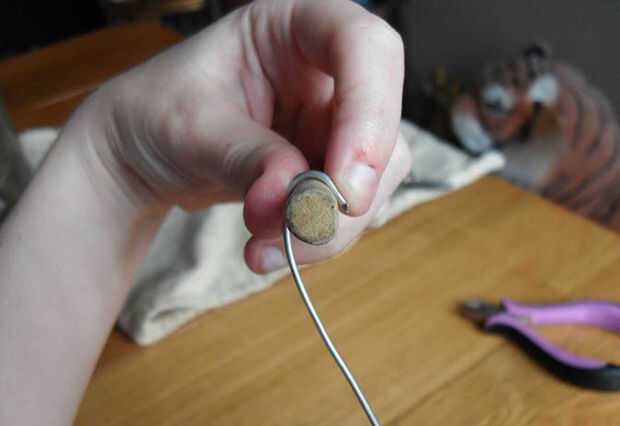 elementos:-Planta de aire-Bombilla de luz-Alambre percha-La guita-Pegamento gorila-Soldador-Alicates de puntaPaso 1:Corte corto segmento de percha y curva con los alicates para crear el gancho. Un pequeño círculo en el extremo opuesto del gancho de l