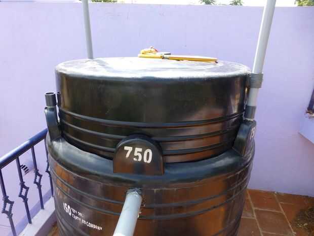 Formación de gas se iniciará después de dos días de alimentar el digestor con mezcla de estiércol de vaca. Puedes ver aquí en estas fotografías que el tanque de gas de soporte comenzó a aumentar a lo largo de los tubos de guía.
