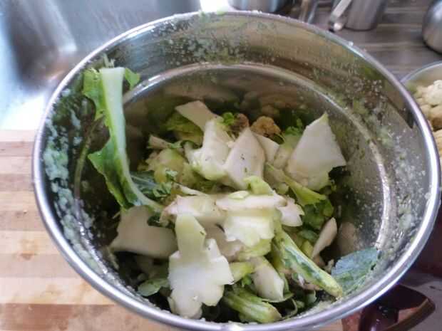 Además, los residuos sólidos deben hacerse en trozos tan pequeños como sea posible. Aquí, usted puede ver en las fotografías que he utilizado un viejo molino mezclador para pulverizar los trozos más grandes de residuos vegetales.