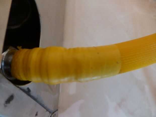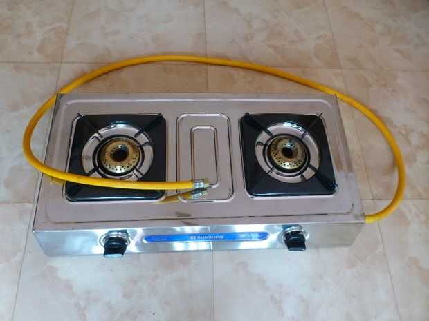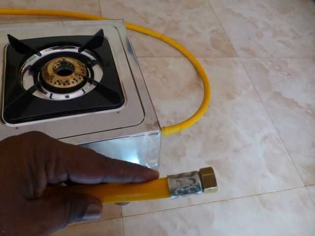 Conecte el extremo libre del tubo de gas a la estufa. También he usado una capa de agua de grifo de aislamiento para la articulación de cualquier fuga del sello.