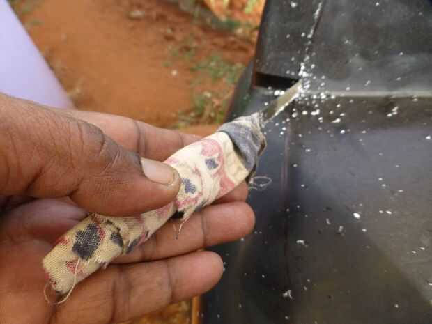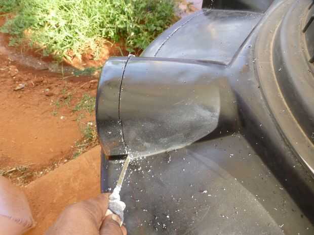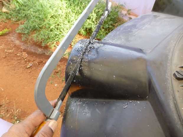 La parte superior del tanque digestor también debe ser cortado y quitado. Sin embargo, el ancho de corte debe ser suficiente para la libre circulación de tanque de gas