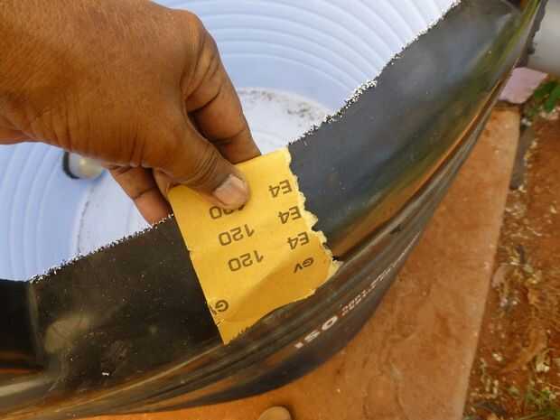 • Usando una sierra para metales, cortar ranuras encima porción proyectada del tanque digestor