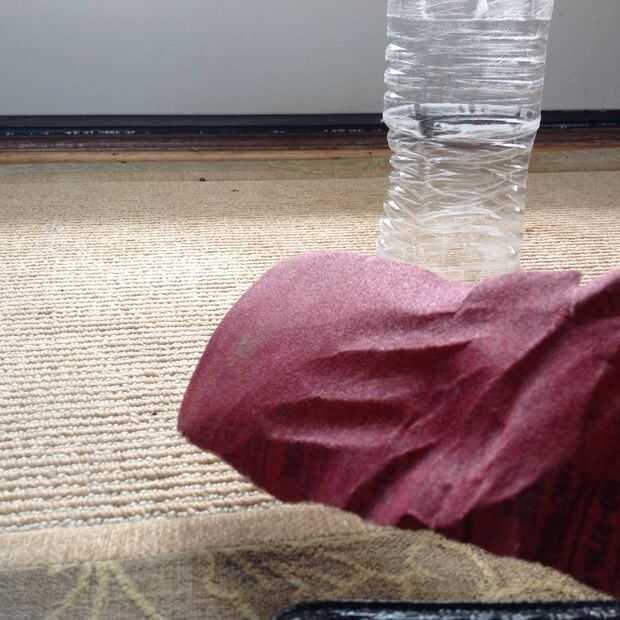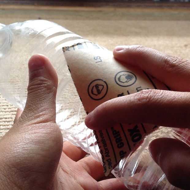 Coge algunas de sus botellas de plástico y la parte exterior de la arena o en el interior, lo que vas a pintar.