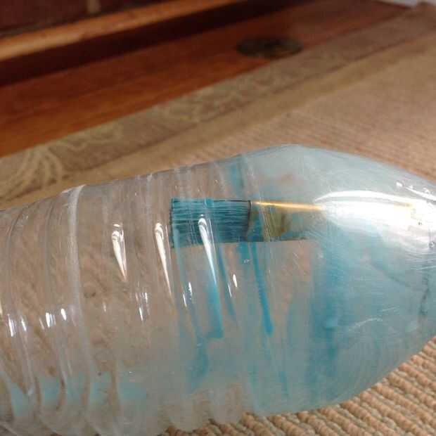 Tome su pintura y pincel y empezar a pintar el exterior, si se lija en la parte. Si se pinta el interior, puede encontrar difícil pintarla realmente bien. Resolví este problema rellenando la botella con un poco de agua (al final de las pequeñas crestas que pueden ser en la parte inferior) y en algunas pinturas. Luego tapa la botella y descolocó bastante bien. La pintura se convirtió en más líquido y sólo en alrededor de los bordes, cubrir de pintura. Después de un tiempo, tal vez encuentre que las botellas tienen pintura simplemente deslizamiento interior. Simplemente gire la botella o sacudir otra vez hasta que la pintura se seca o basta en los rasguños. Luego solo espere que se seque.