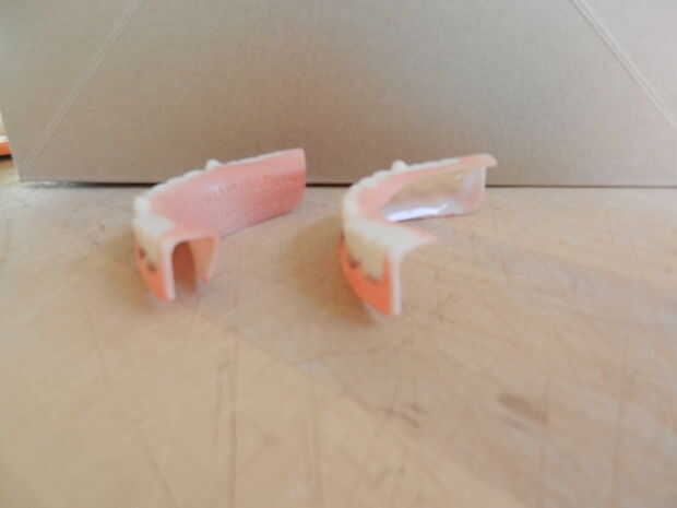 - Preparé los dientes recortando el interior del labio, para que se sentaría "plana" en las mitades.