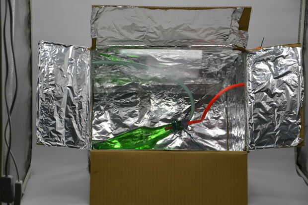Con nuestra planta de energía solar, generación de energía mediante el uso de agua y la energía del sol. Por otra parte, también puede ser utilizado como un horno solar. Por lo tanto, es dos en uno, generan una pequeña cantidad de energía eléctrica y se pueden cocinar algunos platos con energía solar.