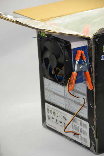 Ahora, usted necesita montar el ventilador y la caja juntos.