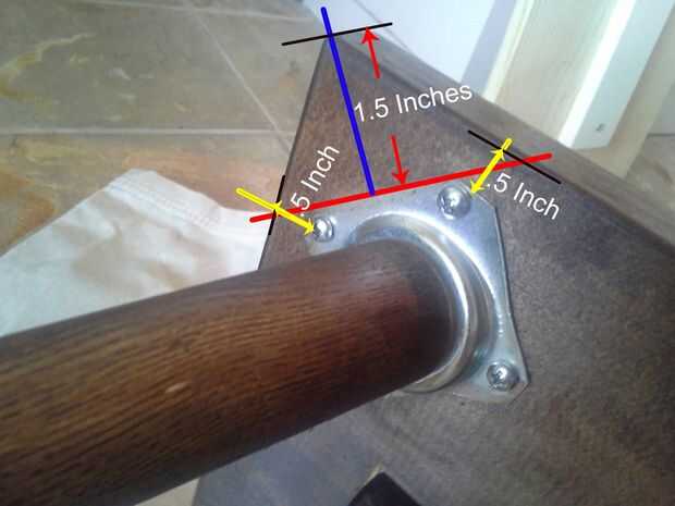 7. las placas de la pierna vienen con 4 pequeños tornillos para sujetar las placas. Las medidas que usé fueron 1,5 pulgadas de la esquina y.5 pulgadas de la esquina de la placa. Ver la imagen. Usted puede ajustar esto, por supuesto, pero esto funcionó para mí. Marque los agujeros con el lápiz, luego use la broca de 7/64 con cinta de profundidad para perforar pequeños agujeros. Tornillo en la placa.