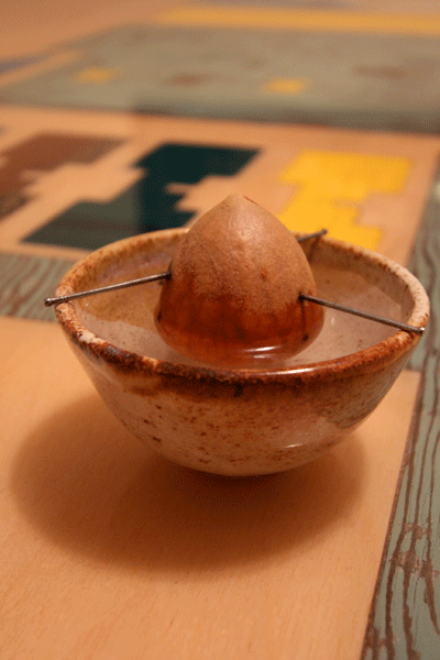 Si usted tiene un vaso pequeño de algunos tipo (cualquier tipo hará) y palillos de dientes o clavos pequeños y agua, estás listo para disfrutar de ese hoyo hasta que echa raíces.  (una diapositiva falta aquí en la que vemos la raíz que sobresale de la parte inferior del hoyo, agregará como sucede)
