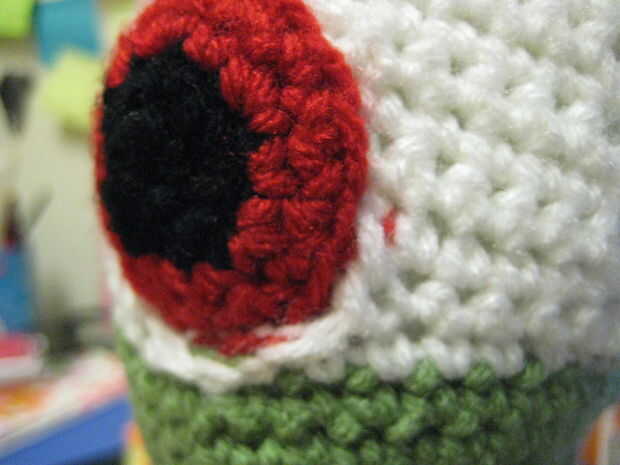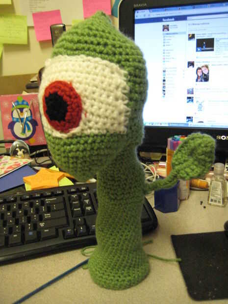 este amigurumi "Jardín variedad Zombie" de Plants vs Zombies fue hecha basado en el patrón del muchacho en el libro Guía del idiota completo a Amigurumi, con modificaciones a la cabeza, la pierna y la ropa. La cabeza debe ser ajustada para tener