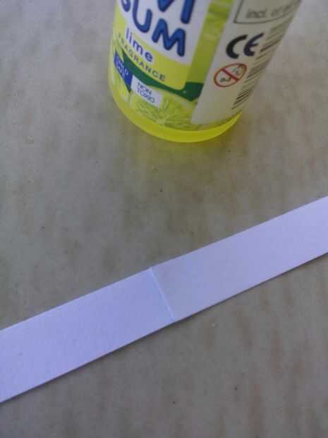 Cortar pequeñas tiras de papel y pégala por fin. Esperar a la seca y el papel de rodillo y pegamento de su extremo