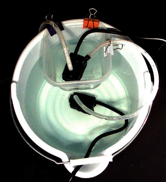La bomba completamente debe bombear el agua de la tina superior. Probablemente correrá un poco seco, pero no es mucho de un problema mientras la bomba permanezca húmeda. Recoger el agua de las bombas y medirlo. Debe ser aproximadamente igual a lo que mide en el paso #1.
