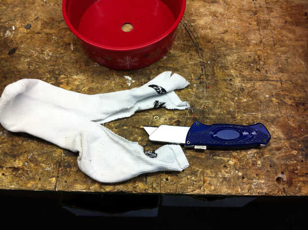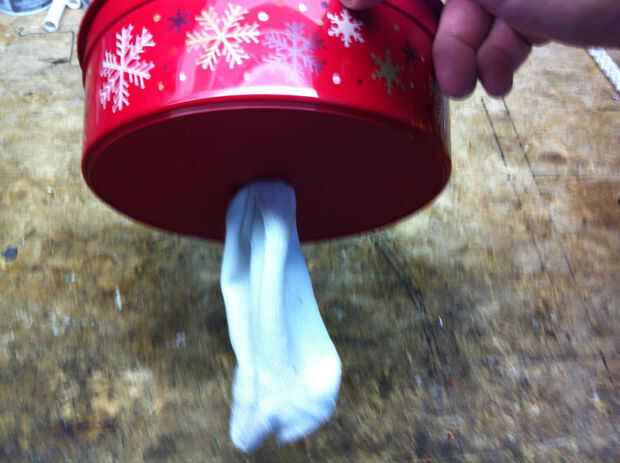 3 un algodón viejo calcetín esta voluntad ser la "mecha de agua".