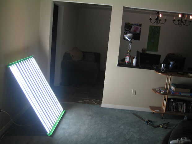 Ahora que sabía que un T5 fue el tipo de bombilla que quería, miraba que estaba comercialmente disponible. Mayoría de T5 de luz simplemente se ponen en un pedazo de una vivienda con un interior en blanco para reflejar parte de la luz hacia abajo. Como paso hasta los accesorios más avanzados (y más caros), reflectores individuales se utilizan alrededor de cada bombilla para maximizar la cantidad de luz del molde hacia abajo, aumentando así la eficiencia global de la instalación enormemente. Estos avanzados accesorios cuestan $500 y para la cantidad de salida que estaba buscando, que me llevó a comenzar a diseñar mi propio. Usé 4 balastos con 12 4 pies de altura salida bulbos T5, que emite unos 60.000 lúmenes mientras dibujo aproximadamente 700 vatios. Comparar a una 100 vatios incandescentes, que sólo pone hacia fuera aproximadamente 1700 lúmenes. También he instalado los interruptores para activar cajas de bulbos, por lo que pude conservar energía cuando no tenga salida.