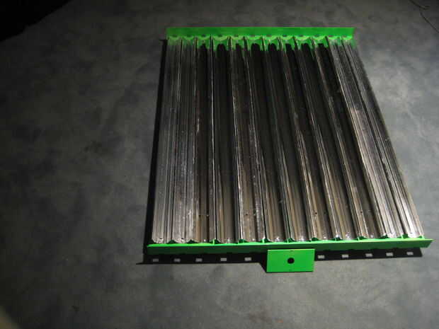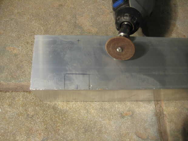 Los pedazos de extremo toman algo de tiempo y paciencia con una Dremel. Espaciados cada recorte cuadrado 2 3/4" aparte, con las plazas externas había centrado 2 7/8" de los bordes exteriores. He trazado con un lápiz, cortar con un pequeño esmeril y había limpiado cada uno con un archivo. En general, me las arreglé para conseguir cosas bastante limpio, gracias especialmente al archivo. Perforado y golpeado ligeramente 24 agujeros para el montaje de los reflectores, situado 1/4" desde el borde.