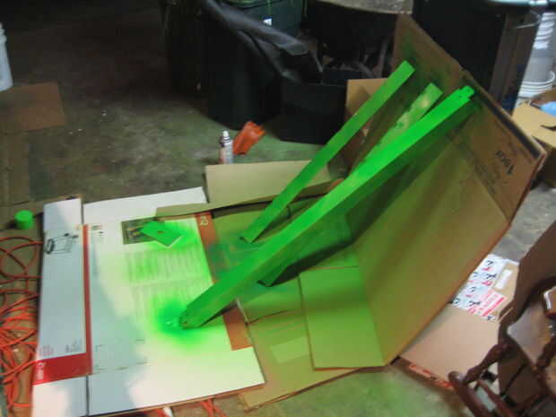 Con el metalúrgico completo, decidí pintar el marco fluorescente verde (es decir, son luces fluorescentes derecha?). Pensé podía darle vida al área de trabajo con algunos colores brillantes, esto por supuesto es opcional.
