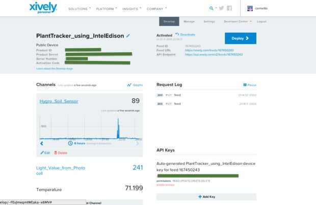 En entrar además en su cuenta de xively.com y ficha de desarrollo