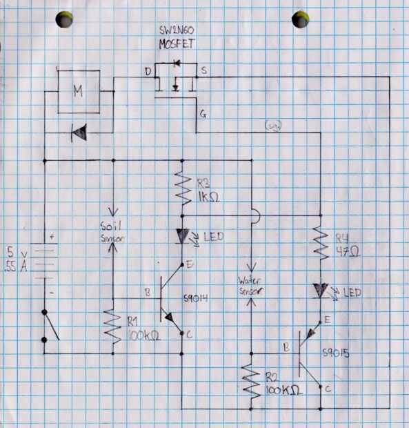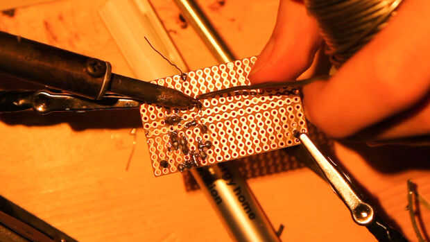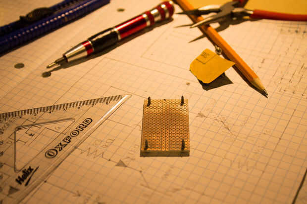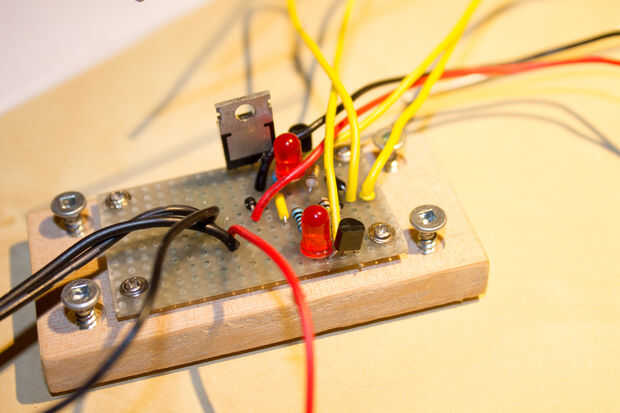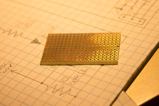 Comience soldando los componentes sobre el perfboard (o placa perforada) según el diagrama del circuito anterior. Asegúrese de conectar cableado adicional para el motor, cables de sensor y cambiar (si utiliza uno).
