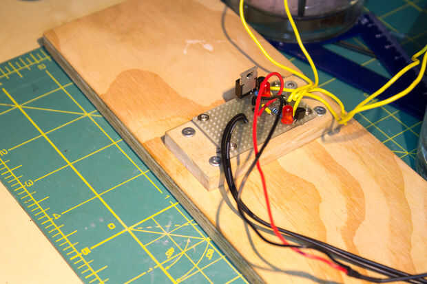 Sentí que faltaba una base, por lo que recortar un 10 por 4" madera contrachapada y utilizado cinta de doble cara para sujetar las copas en.