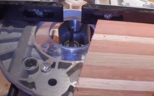 Utiliza un router a una arboleda para la base en la ruta. La arboleda debe ser más grande que la base para tener en cuenta el ángulo de la madera es de 1mm.