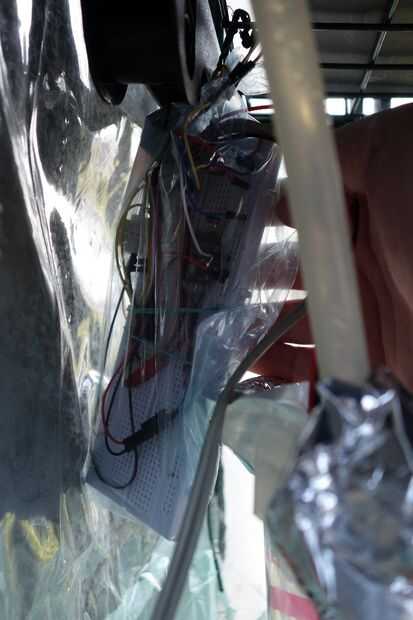 Por último, encamina el cable de alimentación a través de la puerta de mi balcón a la fuente de alimentación.