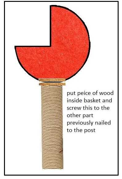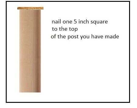 ahora agarra los 2 cuadrados o madera y clavo directamente a través del centro de uno en la parte superior de la manija de la escoba ahora Obtén el otro y ponen esto central dentro de la parte inferior de las canastas y roscarla a la otra pieza de madera que esta debe actuar como una pinza con las cestas entre ellos