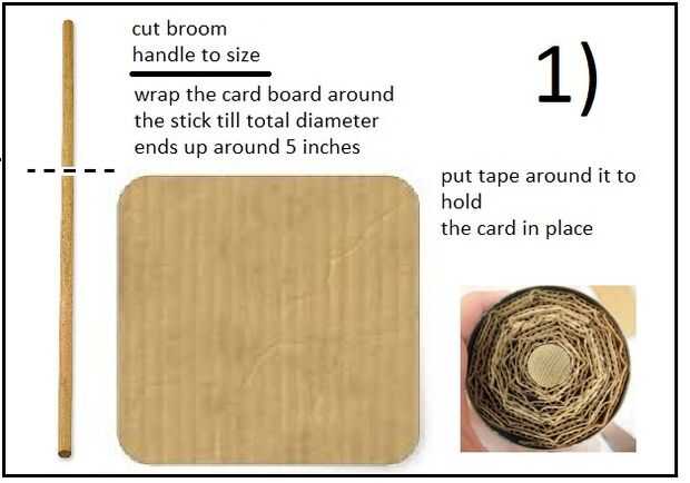 primero Haz tu palo de escoba y rodarla en le tablero de tarjeta al espesor deseado y poner alguna cinta alrededor de ella para sostenerla en lugar de cortar el palo de escoba a la altura deseada querida