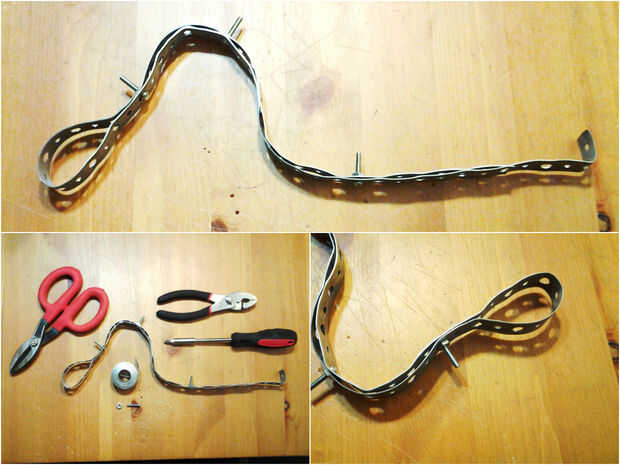 1. Mida la altura del. Desenrolle lentamente el gancho de metal perforado, va hacia arriba y luego volver-duplicación de la fuerza. de lo contrario la luz es muy inestable. cortar con unas tijeras de trabajo pesado, o por el mismo lugar de flexión hacia atrás y hacia adelante hasta que se rompe. asegúrelo con la tuerca/perno en dos lugares.