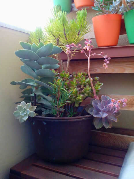 • hacer una combinación de plantas en la maceta grande