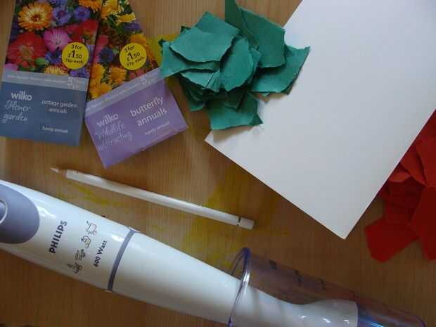 1) papel de colores (verde para el tallo, decidió tener una flor roja)