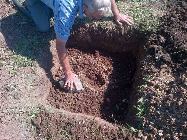 una solución a un dilema clásico: "Debo yo plantar árboles frutales en una propiedad de alquiler?"• Cavar un agujero para un bolso de la Root restricción• Llenarlo con un medio de cultivo adecuado para el árbol y planta en la bolsa• Rellene todo