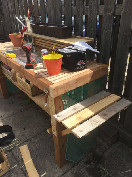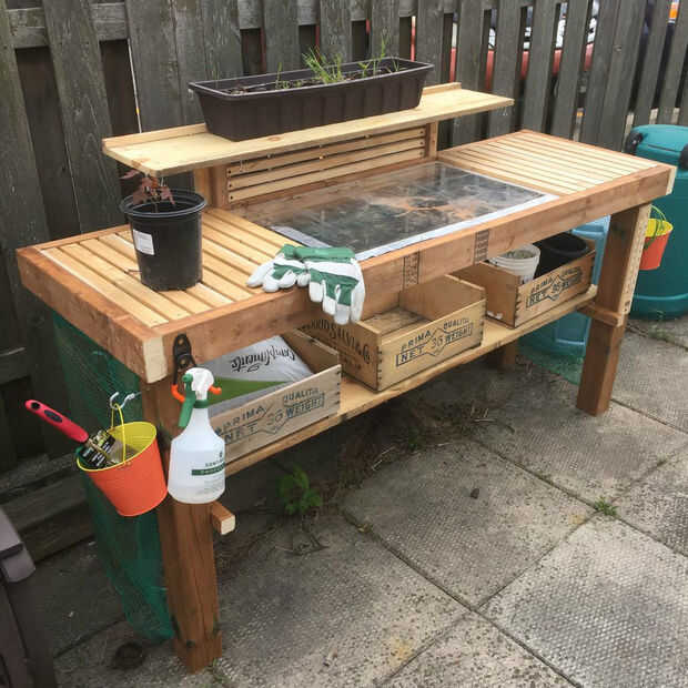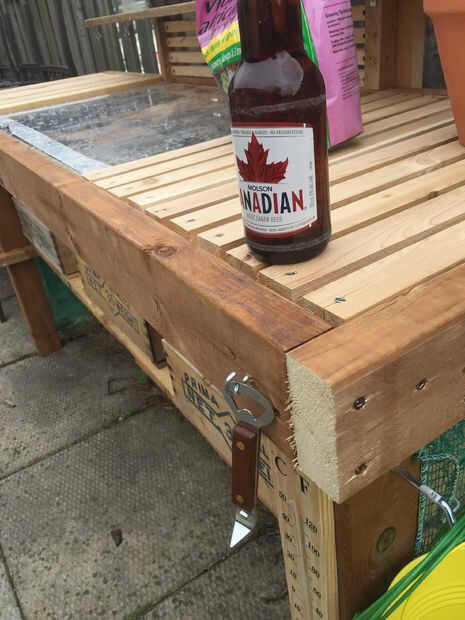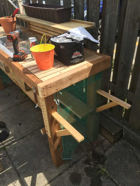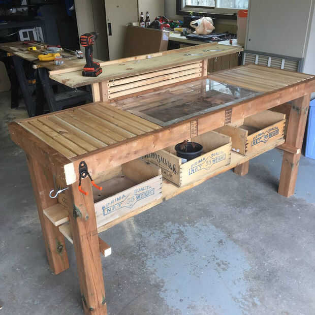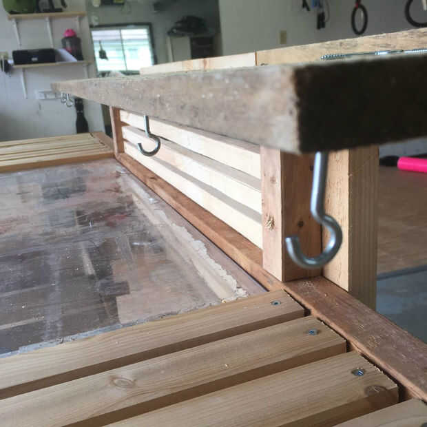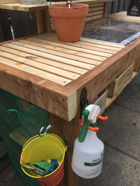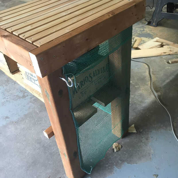 Ahora que el marco y el Banco es básicamente completa puede ahora puede añadir cosas para hacerla más funcional y hacer su vida más fácil al trabajo y siembra en el Banco. He añadido una variedad de diferentes sujetadores y soportes para diferentes herramientas. Se ha añadido red verde en la parte trasera para ayudar a disuadir a algunos animales más grandes como escuderos y aves.